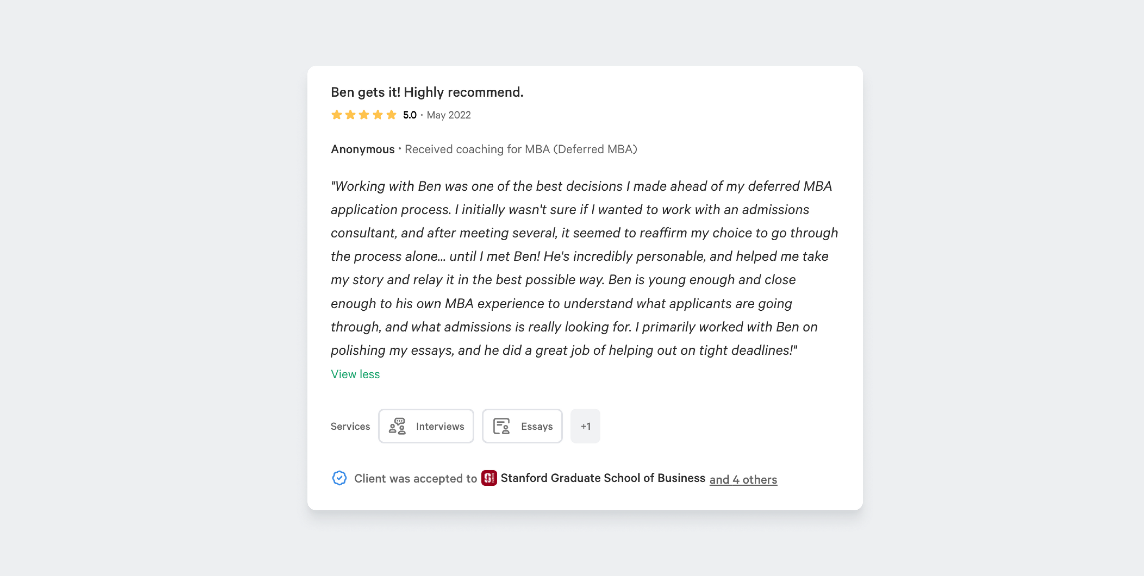 We allow a one-time upload of reviews from individuals whom you’ve worked with outside of Leland. Many of you have coached for many years and we want you to be able to show that expertise on your profile. To get reviews from past, non-Leland clients, all you need to do is send them this form. We will automatically receive the responses and upload them to your profile. Remember, you only get one upload so send it to as many of the people you’ve coached as possible.