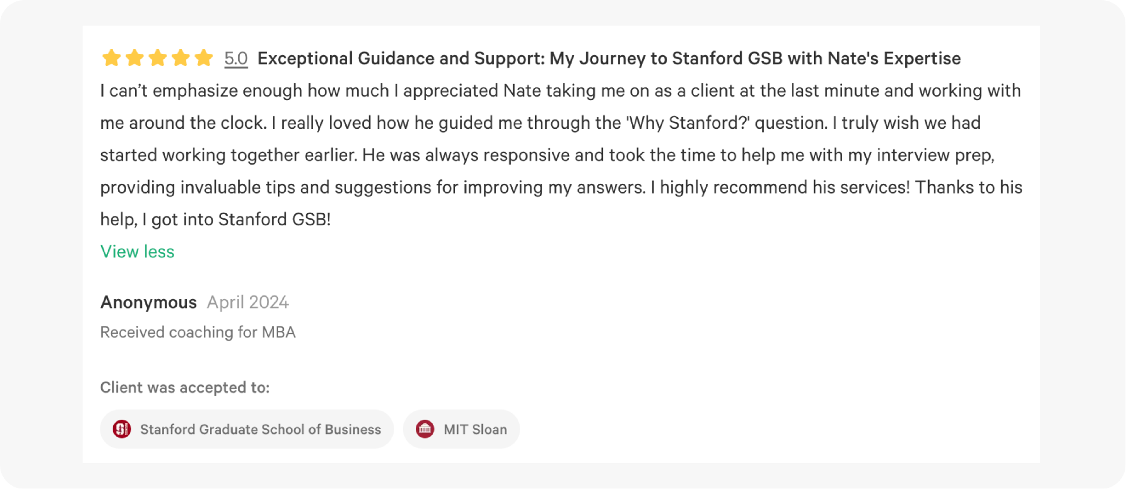 Best For: Consultants trying to stand out, GSB applicants
