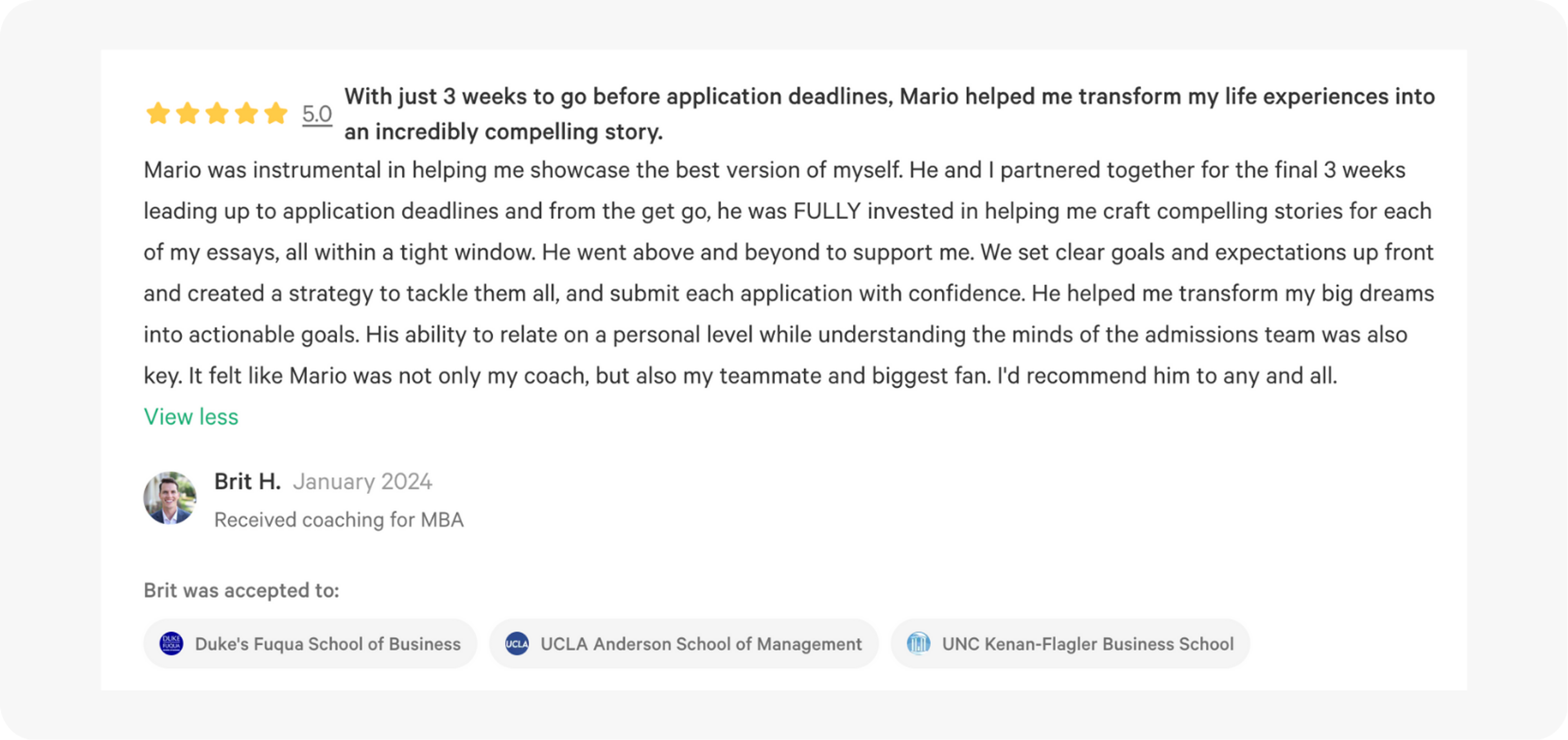 - Background: Professional Admissions Coach